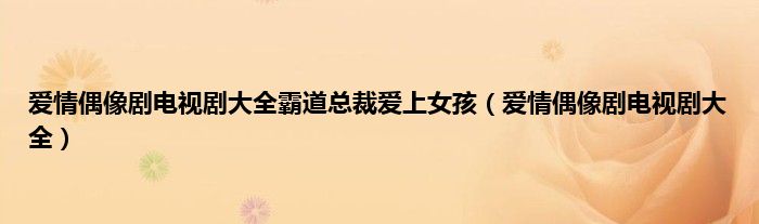 大家好,小问来为大家解答以上问题。爱情偶像剧电视剧大全霸道总裁爱上女孩,爱情偶像剧电视剧大全这个很多人还不知道,现在让我们一起来看看吧!