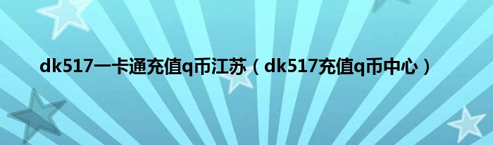 大家好,小问来为大家解答以上问题。dk517一卡通充值q币江苏,dk517充值q币中心这个很多人还不知道,现在让我们一起来看看吧!