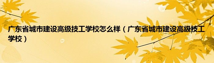 以上就是【广东省城市建设高级技工学校怎么样,广东省城市建设高级技工学校】相关内容。