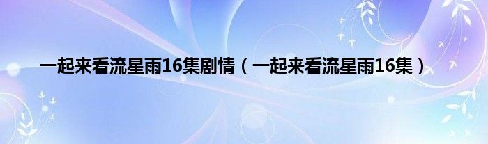 以上就是【一起来看流星雨16集剧情,一起来看流星雨16集】相关内容。