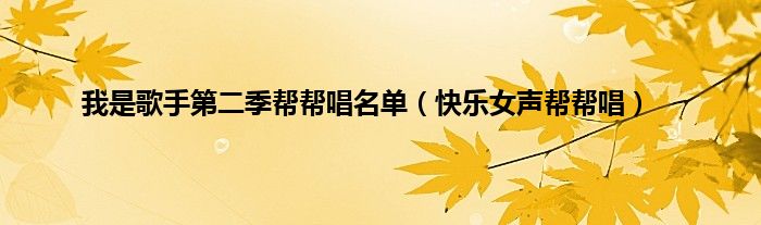 以上就是【我是歌手第二季帮帮唱名单,快乐女声帮帮唱】相关内容。