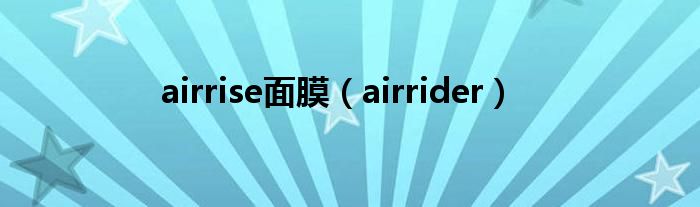 大家好,小问来为大家解答以上问题。airrise面膜,airrider这个很多人还不知道,现在让我们一起来看看吧!