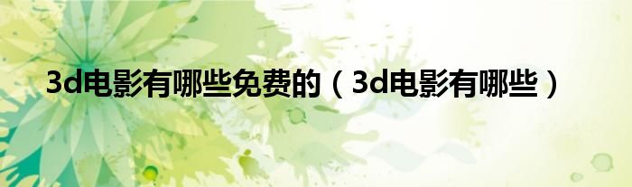 以上就是【3d电影有哪些免费的,3d电影有哪些】相关内容。