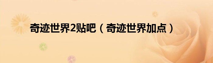大家好,小问来为大家解答以上问题。奇迹世界2贴吧,奇迹世界加点这个很多人还不知道,现在让我们一起来看看吧!