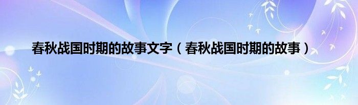 大家好,小问来为大家解答以上问题。春秋战国时期的故事文字,春秋战国时期的故事这个很多人还不知道,现在让我们一起来看看吧!