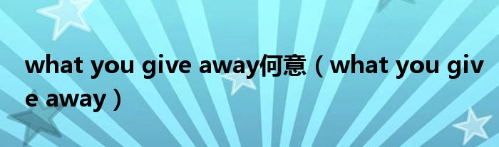 大家好,小问来为大家解答以上问题。what you give away何意,what you give away这个很多人还不知道,现在让我们一起来看看吧!