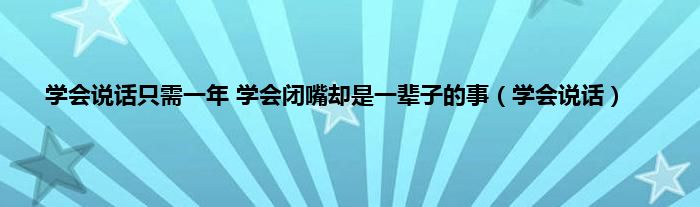 学会说话只需一年学会闭嘴却是一辈子的事(学会说话)
