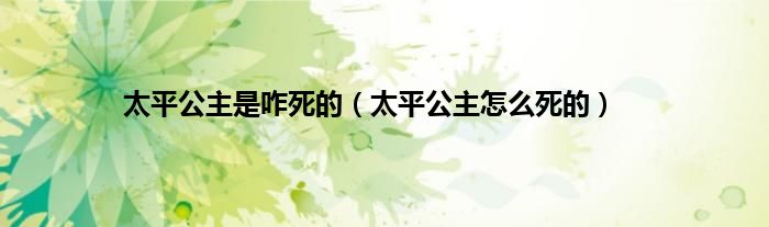 大家好,小问来为大家解答以上问题。太平公主是咋死的,太平公主怎么死的这个很多人还不知道,现在让我们一起来看看吧!