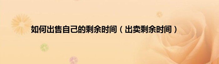 以上就是【如何出售自己的剩余时间,出卖剩余时间】相关内容。