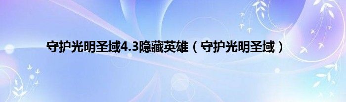 以上就是【守护光明圣域4.3隐藏英雄,守护光明圣域】相关内容。