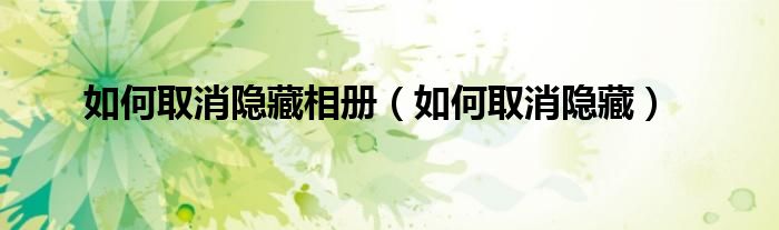 以上就是【如何取消隐藏相册,如何取消隐藏】相关内容。