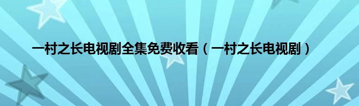 一村之长电视剧全集免费收看(一村之长电视剧)