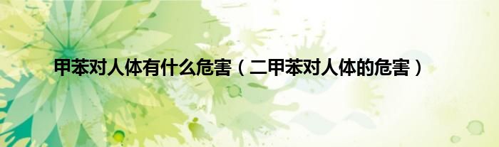 以上就是【甲苯对人体有什么危害,二甲苯对人体的危害】相关内容。