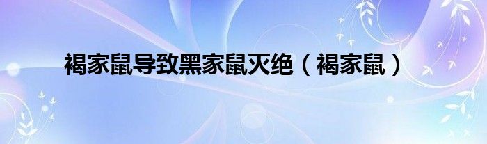 以上就是【褐家鼠导致黑家鼠灭绝,褐家鼠】相关内容。