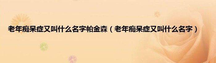 本文,老年痴呆症又叫什么名字帕金森,老年痴呆症又叫什么名字到此就分享完毕,希望对大家有所帮助。