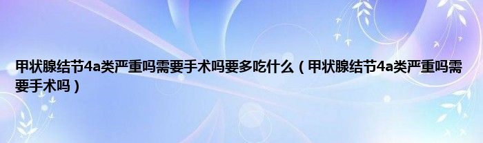 本文,甲状腺结节4a类严重吗需要手术吗要多吃什么,甲状腺结节4a类严重吗需要手术吗到此就分享完毕,希望对大家有所帮助。