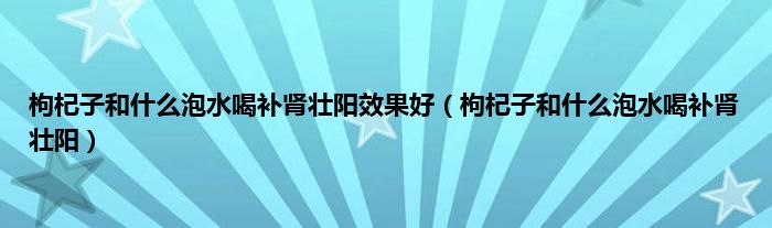 本文,枸杞子和什么泡水喝补肾壮阳效果好,枸杞子和什么泡水喝补肾壮阳到此就分享完毕,希望对大家有所帮助。
