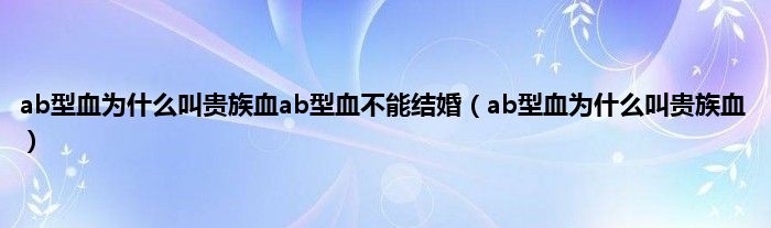 大家好,ab型血为什么叫贵族血ab型血不能结婚,ab型血为什么叫贵族血很多人还不知道,现在让我们一起来看看吧!