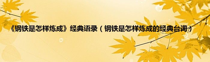 以上就是【《钢铁是怎样炼成》经典语录,钢铁是怎样炼成的经典台词】相关内容。