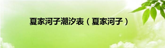 大家好,小问来为大家解答以上问题。夏家河子潮汐表,夏家河子这个很多人还不知道,现在让我们一起来看看吧!