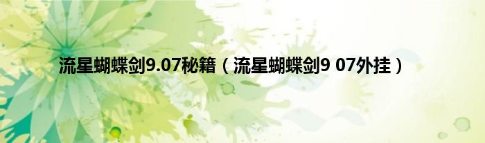 大家好,小问来为大家解答以上问题。流星蝴蝶剑9.07秘籍,流星蝴蝶剑9 07外挂这个很多人还不知道,现在让我们一起来看看吧!