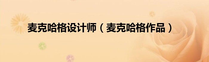 本文,麦克哈格设计师,麦克哈格作品到此就分享完毕,希望对大家有所帮助。