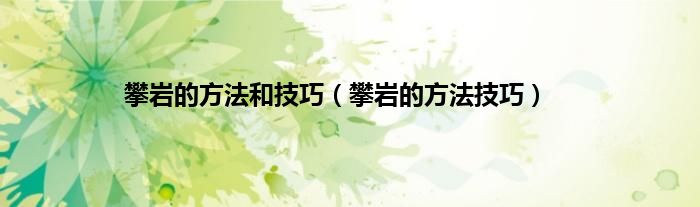 本文,攀岩的方法和技巧,攀岩的方法技巧到此就分享完毕,希望对大家有所帮助。
