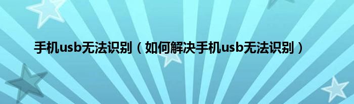 大家好,手机usb无法识别,如何解决手机usb无法识别很多人还不知道,现在让我们一起来看看吧!