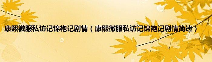 本文,康熙微服私访记锦袍记剧情,康熙微服私访记锦袍记剧情简述到此就分享完毕,希望对大家有所帮助。