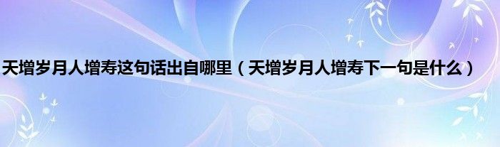 本文,天增岁月人增寿这句话出自哪里,天增岁月人增寿下一句是什么到此就分享完毕,希望对大家有所帮助。