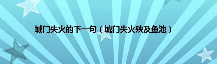本文,城门失火的下一句,城门失火殃及鱼池到此就分享完毕,希望对大家有所帮助。